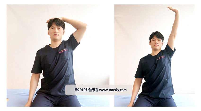 충돌 증후군 증상의 경우 어깨 리듬이 무너졌기에 이번 동작으로 중부와 하부를 자극해 어깨 리듬을 회복할 수 있는 동작입니다.