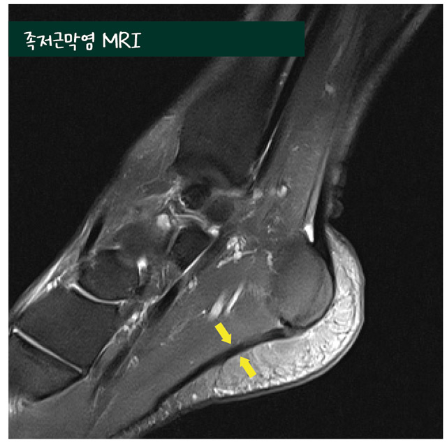 진찰 시에는 발 뒤꿈치 뼈 전내측 종 골 결절 부위에 압통이 있고, 족저근막을 따라 발바닥 에 전반적인 통증을 보일 수 있습니다. 다른 질 환과의 감별진단을 위하여 방사선 검사, 초음 파 검사 및 자기공명영상(MRI) 검사를 시행할 수 있습니다.